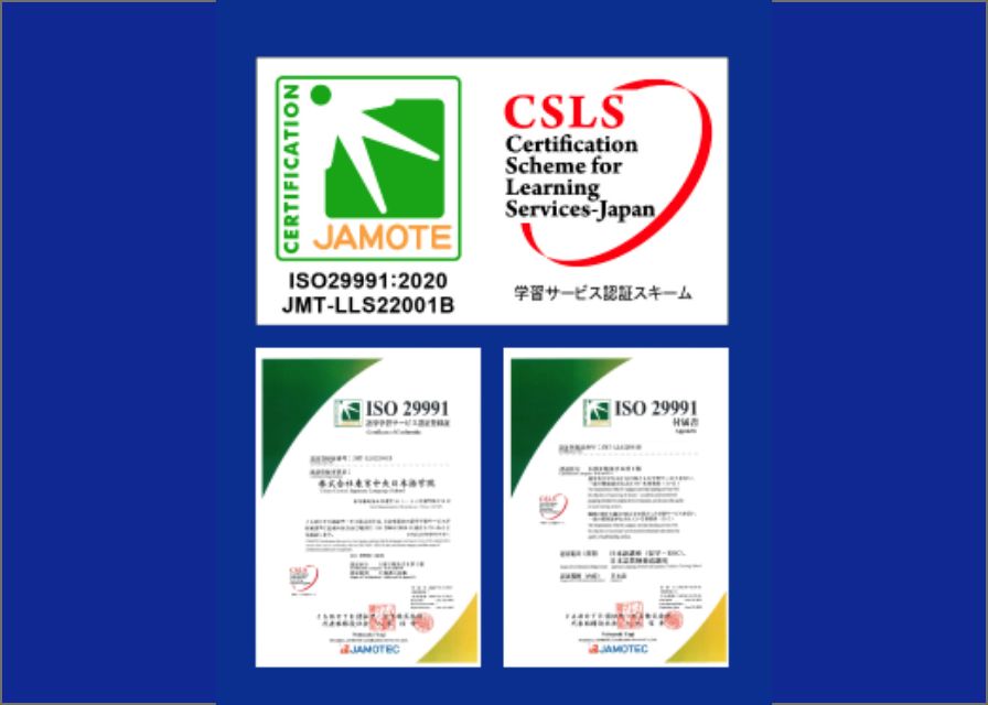 TCJ is certified according to ISO 29991:2020, the international standard for language learning services. ISO 29991:2020 specifies requirements for language learning services and aims to improve the transparency and reliability of language learning services, protect consumers, and improve the quality of language learning The standard aims to improve transparency and reliability of language learning services, protect consumers, and enhance the quality of language learning. With this certification, TCJ’s language learning services are now recognized as meeting the requirements of the international standard, and TCJ will continue its efforts to continuously improve the quality of its Japanese language learning services.