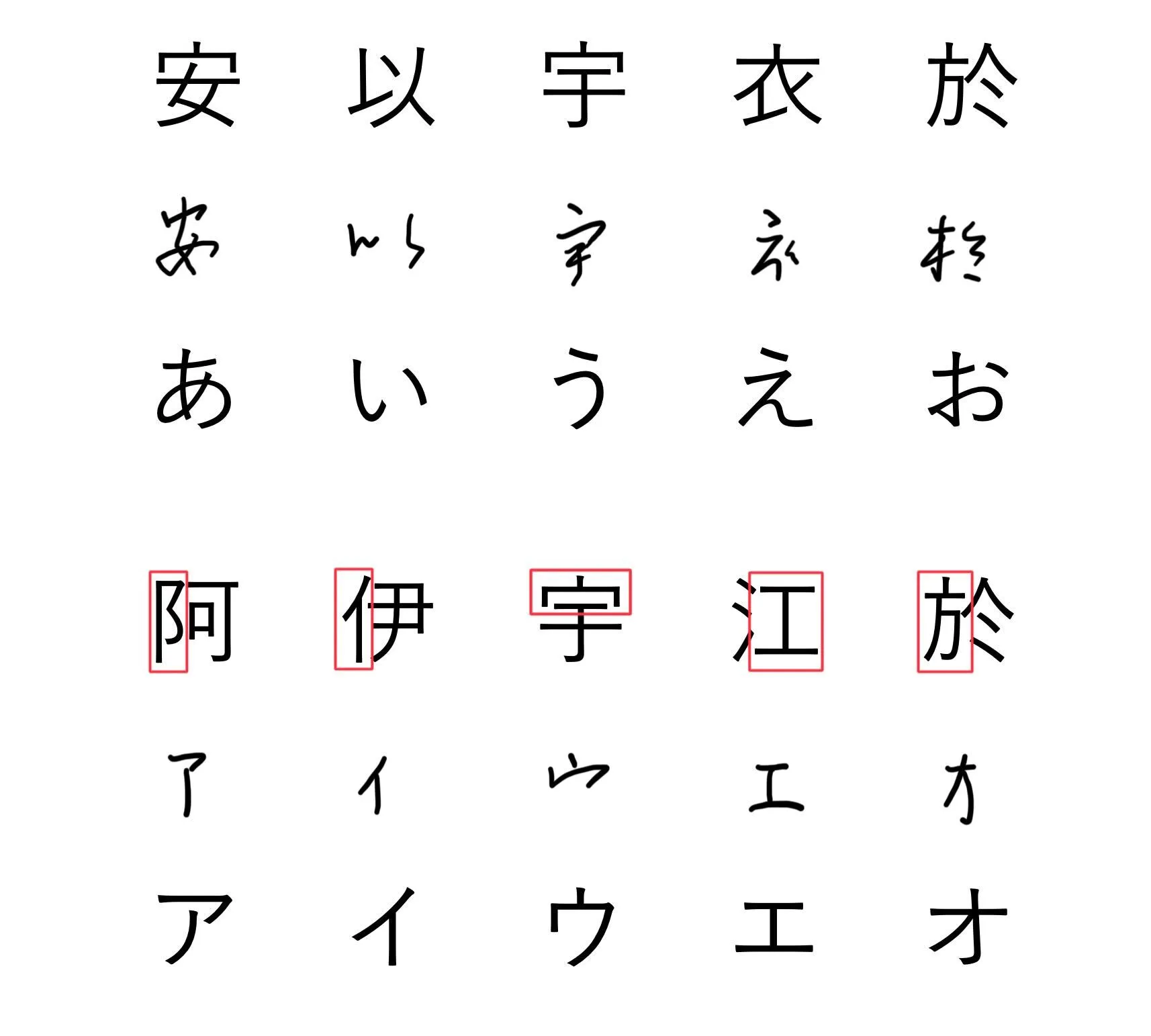 The biggest characteristic of hiragana is that, except for ん (n), all characters contain one of the vowel sounds: a, i, u, e, or o. If you try to extend the sound of each hiragana, you’ll notice that they all contain one of these vowels. This feature is also present in katakana.