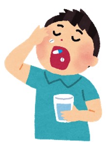 (1) To take medicine.: “薬を飲む Kusuri wo nomu” is a set phrase. Japanese people do not say “薬を食べる Kusuri wo taberu” and “薬を入れる Kururi wo ireru.” “薬 kusuri” and “飲む nomu” are used together.