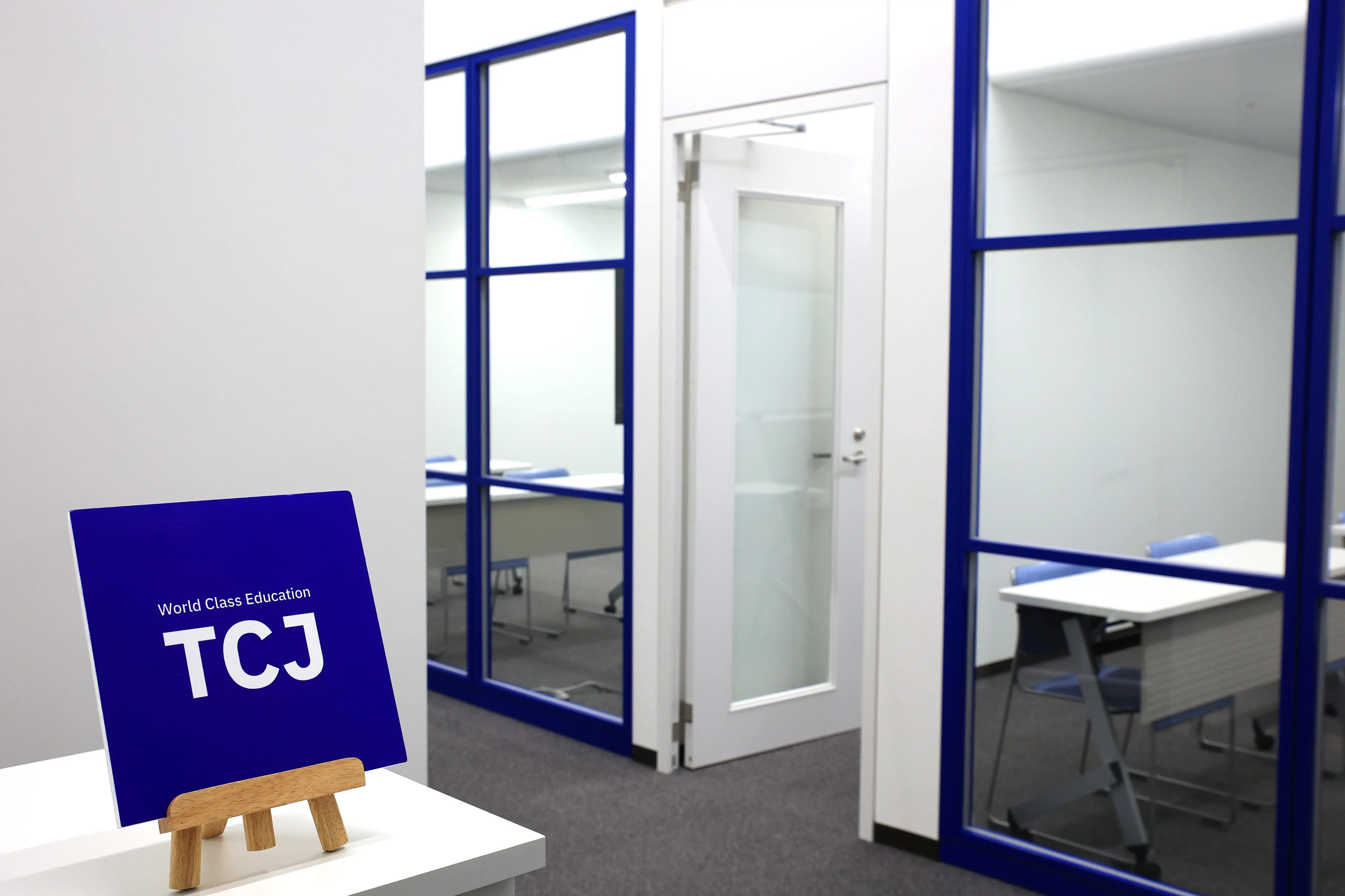 TCJ's school interior is decorated in simple blue and white colors. The classrooms are spacious and clean, providing a comfortable and relaxed environment for learning.